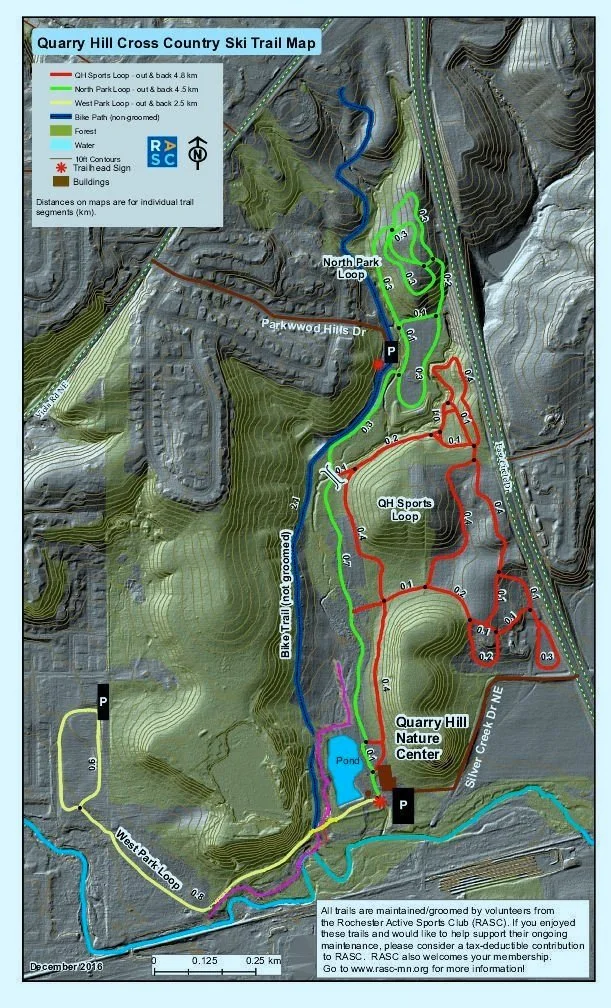 Rochester Active Sports Community works closely with Rochester Parks & Recreation to support cross country skiing at multiple locations. RASC volunteers provide trail maintenance and grooming support for trails at Essex Park and Quarry Hill. RASC is also working with Rochester Parks & Recreation to develop 11km of new trails at Gamehaven Park, which will include 2-3 km of trail with snowmaking capability.